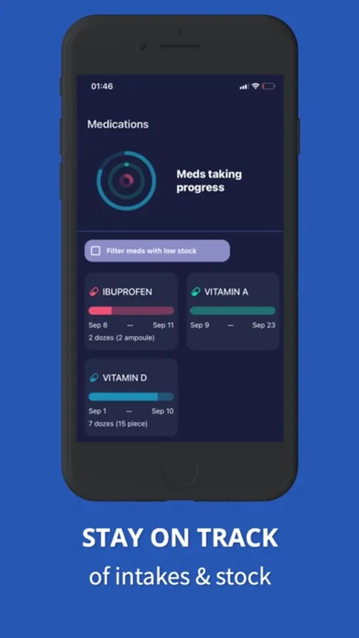 4. Progress Tracking: Easily monitor your medication intake progress with our innovative tracking feature. Whether you want to track medication adherence over days, weeks, or months, app provides you with visual statistics that are easy to comprehend. Gain insights into your medication habits and stay accountable for your health.