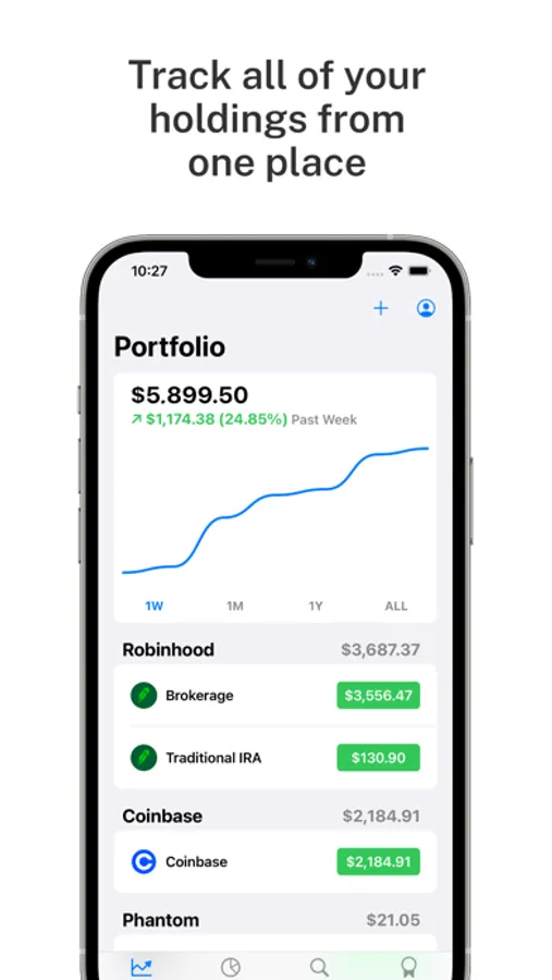 Track your portfolio's performance over time. See your growth and compare your performance against key financial indices. Set personal financial goals and monitor your progress effortlessly.