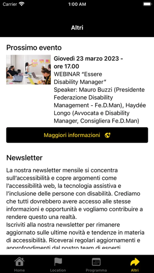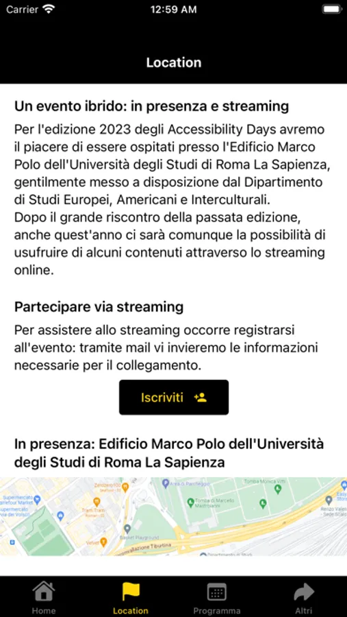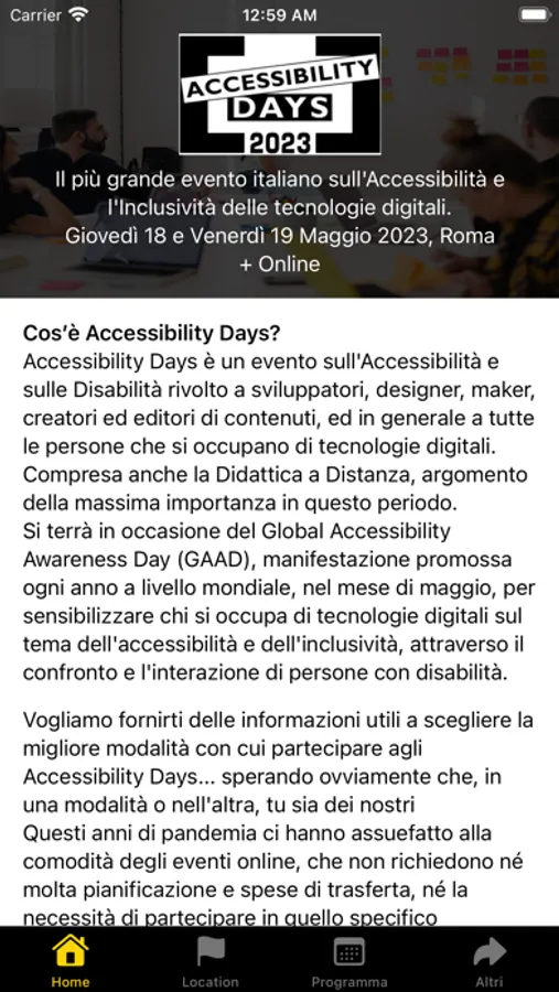 - Tutte le informazioni sulla sede e su come raggiungere l'evento Accessibility Days
