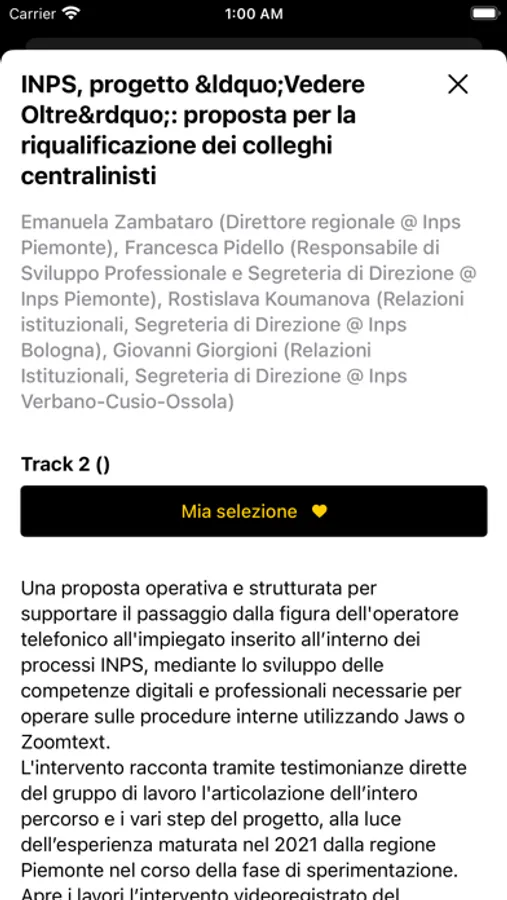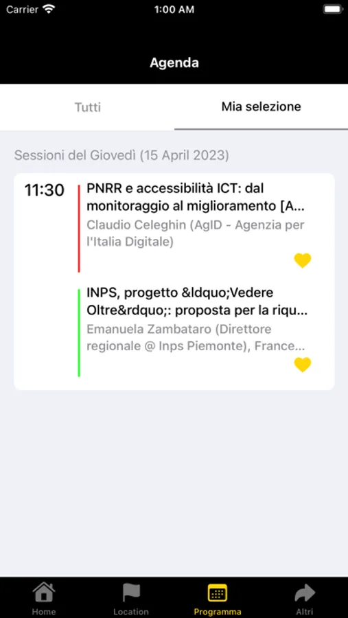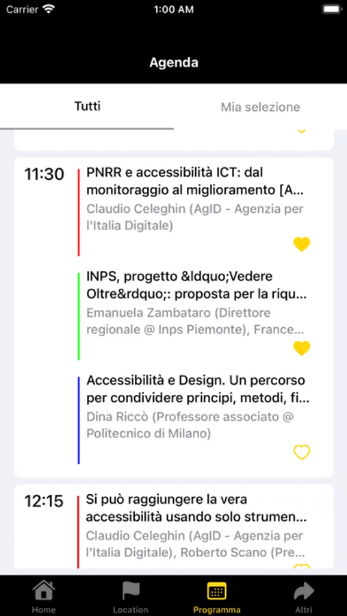 - Seleziona le tue presentazioni preferite e inseriscile nella tua agenda personale