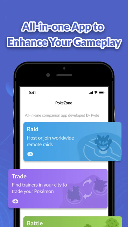 PokeZone is the only app you need to enhance your Pokémon GO experience. Join more than 4.000.000 trainers to find worldwide remote raids and practice PvP battles. Build clans to play with local trainers.