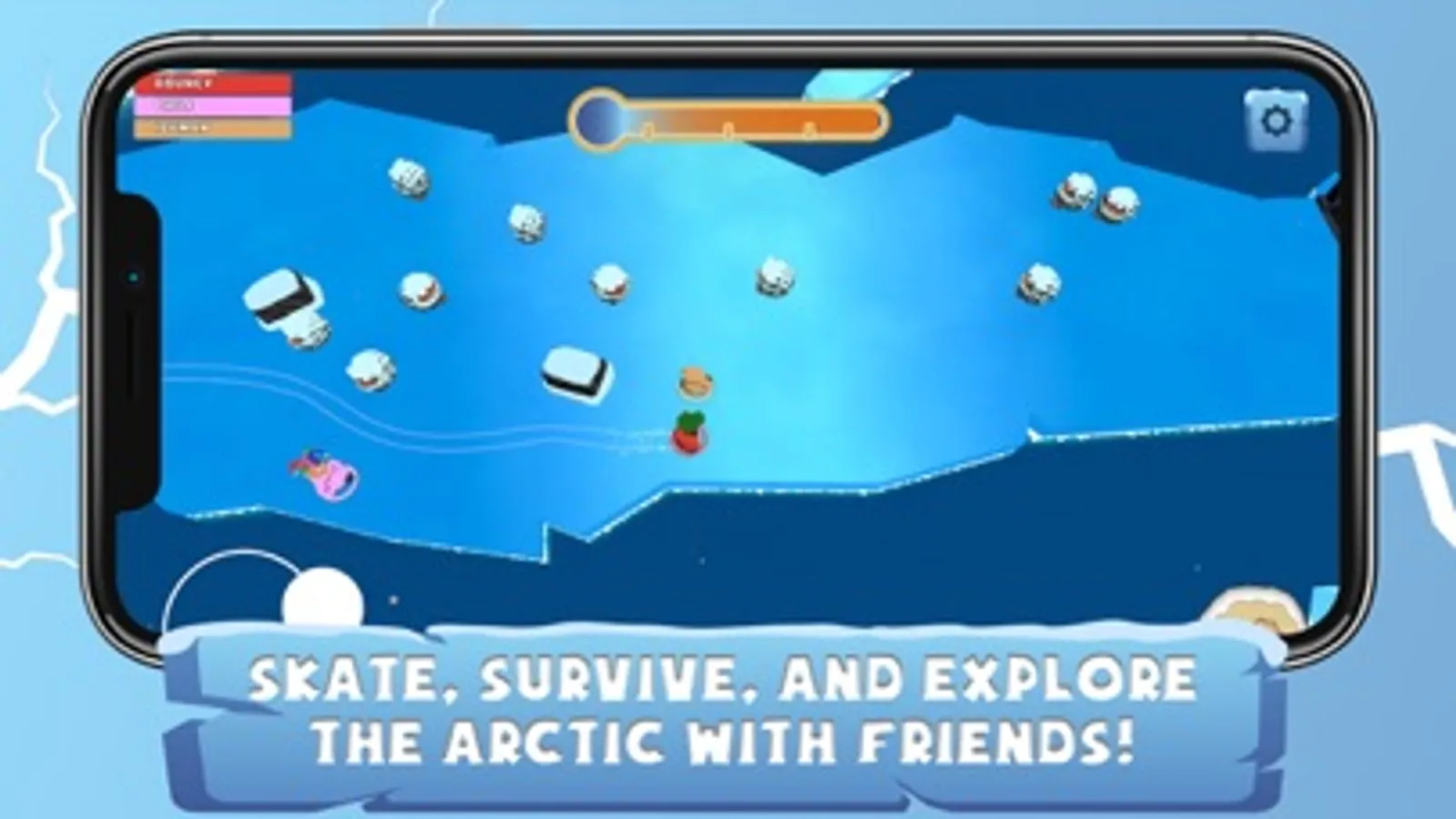 Ice Sliders is an exciting multiplayer game that takes you on a thrilling ice-skating adventure across the Arctic tundras. With up to 8 players, you'll work together to brave the frozen wilderness and reach distant research stations while avoiding obstacles that stand in your way.