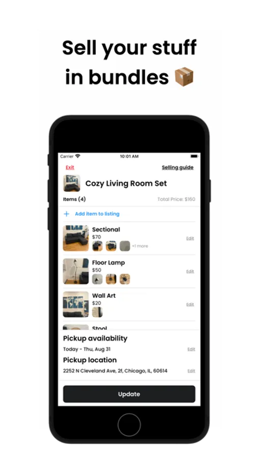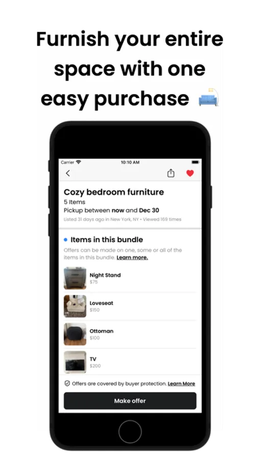 With SideStreet, you can furnish your whole space in one easy transaction. Sellers can pass on their entire living room or bedroom to buyers by bundling items together. Bundles are great for moving sales, and to make more money by selling the cohesive collections you’ve worked hard to assemble. If the buyer is only interested in a few of the items in your bundle, no problem, they can make an offer on only the items they want.