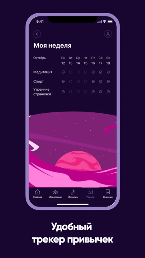 • Трекер привычек поможет поддерживать регулярность в любом деле и отслеживать свой прогресс;