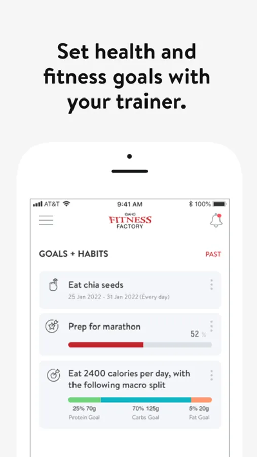With the Idaho Fitness Factory App, you can start tracking your workouts and meals, measuring results, and achieving your fitness goals, all with the help of your personal trainer.