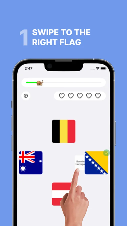 Geo challenge is a game with flags of all countries around the world. It is not just a boring test, it is a fun game, where you can learn all the flags. By dropping a country name in the right direction you will progress.