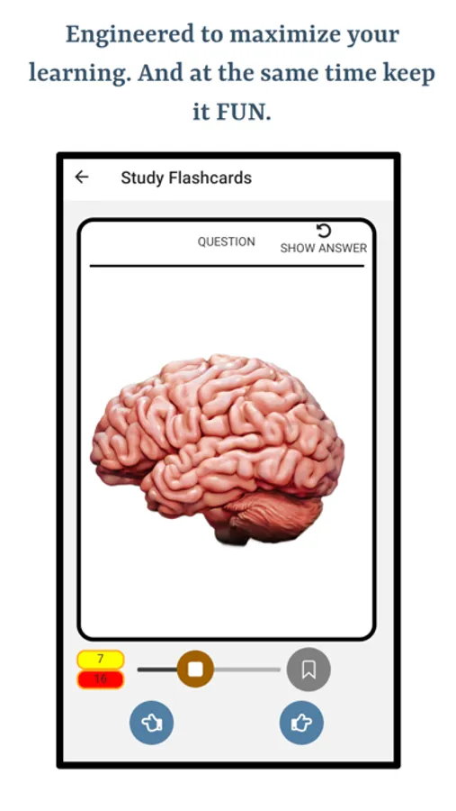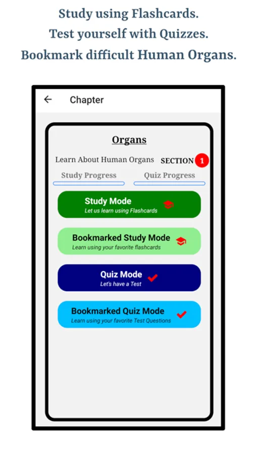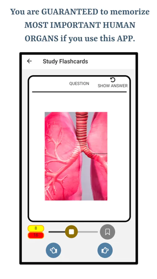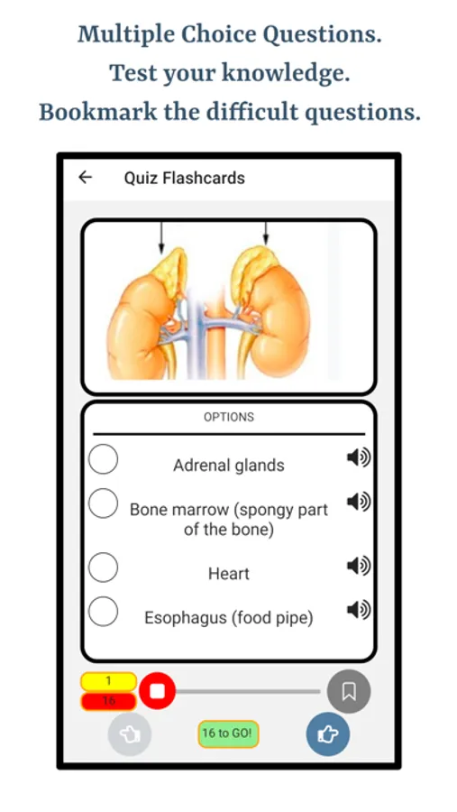 This app is a great resource to memorize Most Important Human Organs. The app is engineered to make users perfect identifying different human organs by studying for a very short amount of time. Audio functionality and bookmarking is available throughout the app on chapter, section, study mode and quiz modes.