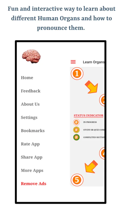The app will help you learn the correct pronunciation of different human organs using English language. Following are the main features of this app