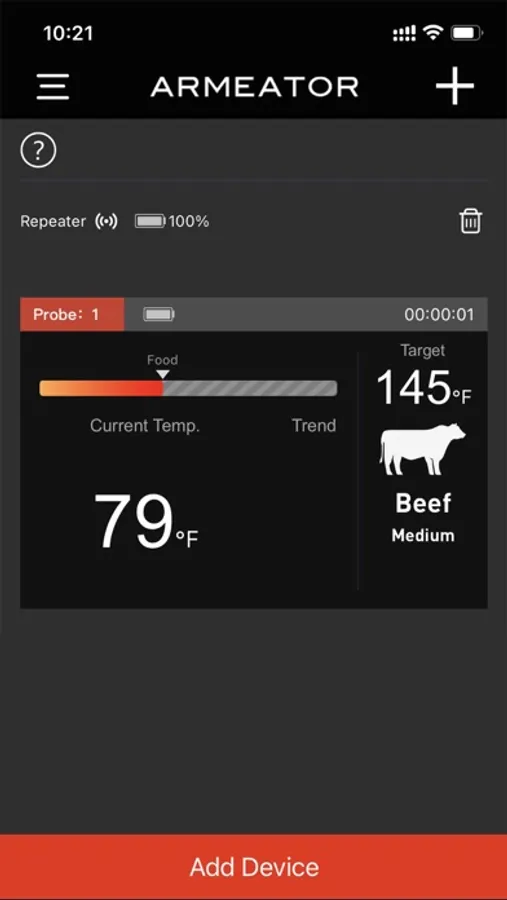 Armeator is a smart application that works in tandem with the Armeator wireless meat thermometer. By connecting to the thermometer through Bluetooth, the app allows you to monitor the temperature in real-time and alerts you when the preset temperature is reached. The app provides guided temperatures for various types of meat cooking, giving you the option to select the desired temperature settings to match your cooking preferences. Whether you're a novice cook or an experienced chef, Armeator makes it easy to achieve perfect results every time.