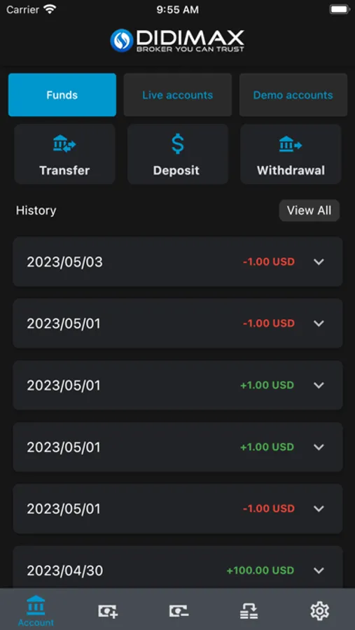 Create Instant Deposit, Withdrawal & Transfer Between Account on your Mobile