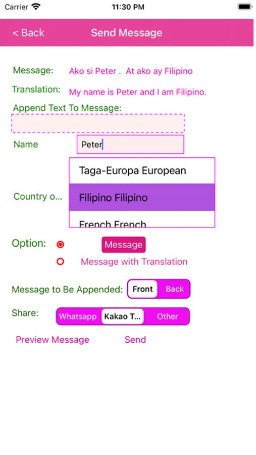 TagalogSharingApps has provided a feature for user so that user who does not know Tagalog can also send messages in Tagalog to your friend.