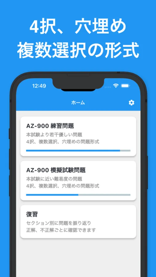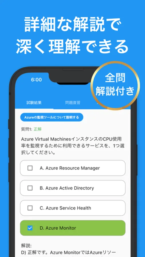 AZ-900 試験で問われる知識を練習問題、模擬問題で学習しながら身につけれます。