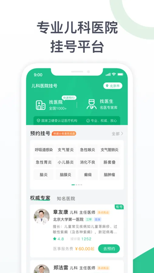 儿科医院挂号,专业儿童医院挂号平台,为患者提供方便快捷的儿科挂号就医渠道。拥有多个科室5000+医生号源;基于移动互联网医疗技术,提供三甲医院多点执业医生号源,方便患者挂号就医;手机随时关注号源变化,真正避开号贩子,不收取任何费用,严选推荐优质专家医生,随时随地轻松挂号,充分体现互联网+医疗的便捷高效优势。