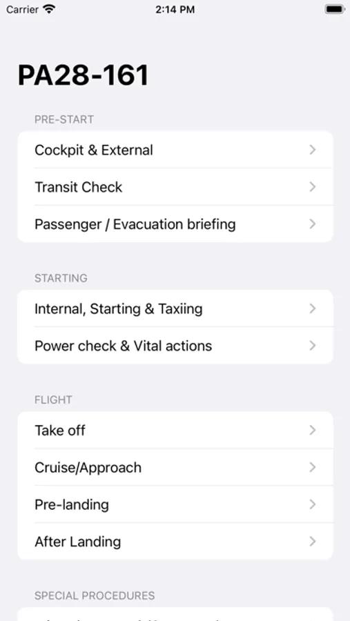 Designed with simplicity and reliability in mind, this app provides one-click access to the standard PA28-161 checklist for GA pilots.