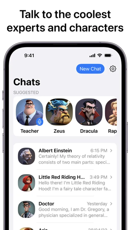 Download now and start conversing with the world's coolest experts and characters.
