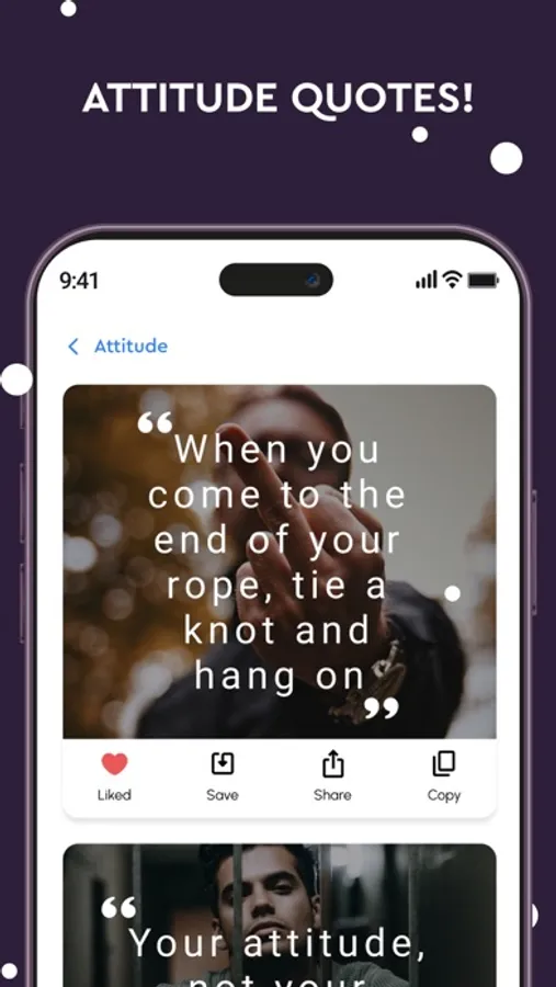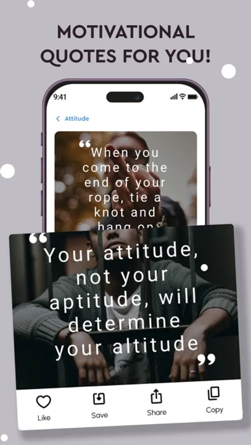 Unlike other life quotes and sayings with pictures apps, here you can also just copy the text and use it wherever you like. No need to use the quote as an image. And with the ability to save and share your favorite quotes, you can easily spread wisdom and positivity with friends and family.