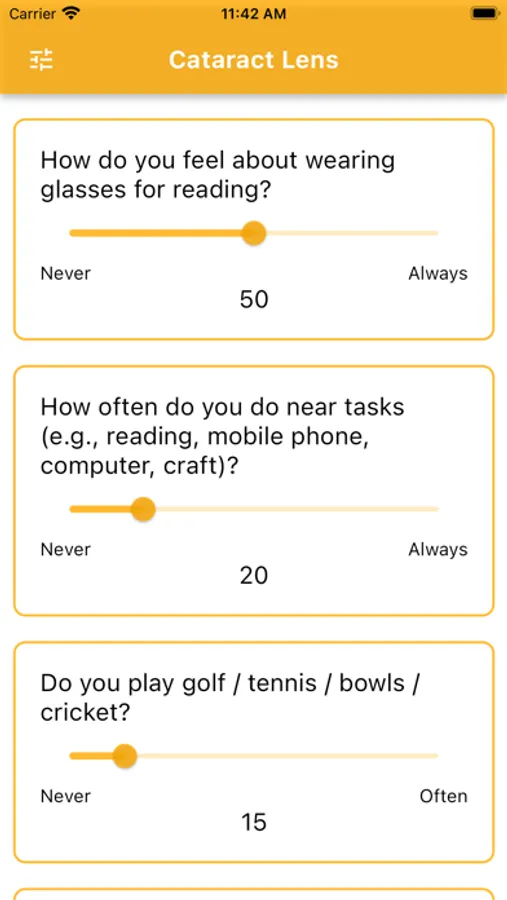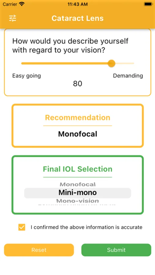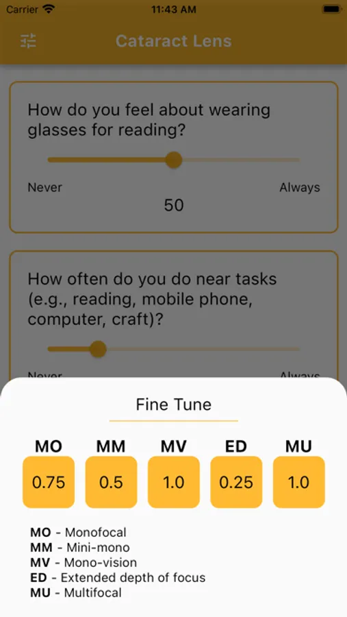 Experience the pinnacle of precision with Cataract Lens – where state-of-the-art algorithms meticulously analyse patient responses to craft a truly individualised IOL recommendation. Empowering doctors with the ability to fine-tune weightings for specific lens types, this app ensures a tailored approach that aligns with each patient's unique needs.