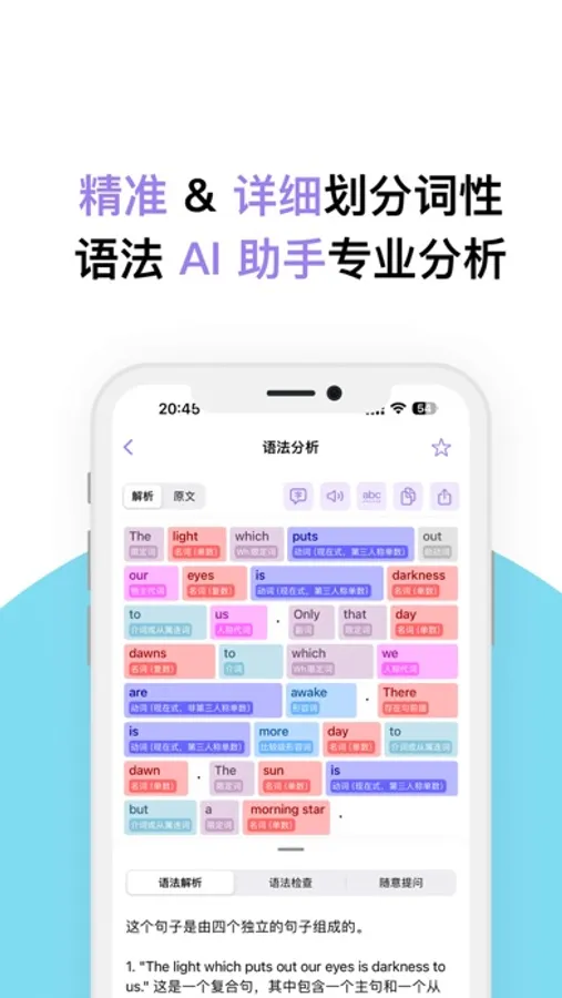 - AI 语法分析 & 检查:强大的人工智能分析句子语法