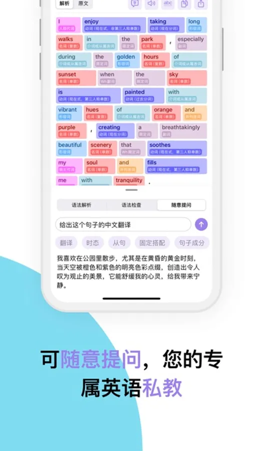 “爱语法”是一款英语语法分析应用,内置最新的人工智能语法分析系统 + 可视化的词性标注,带来了新的 “主动思考” + “及时反馈” 的英语学习方式。不用死记硬背单词和语法知识,学习英语也能高效率!