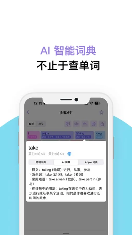 - AI 智能词典:不止于查单词!分析单词在句子中的用法