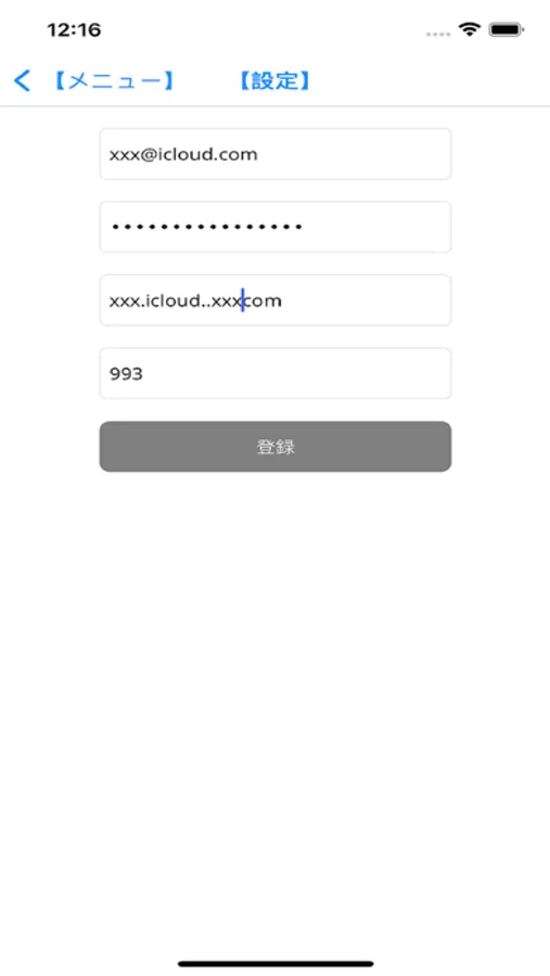 メール受信のため、以下の情報をアプリに登録します。
