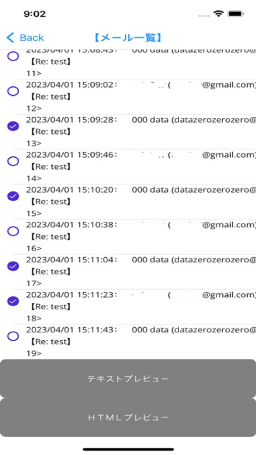 選択したメールは、テキスト、HTMLを選択して表示します。
