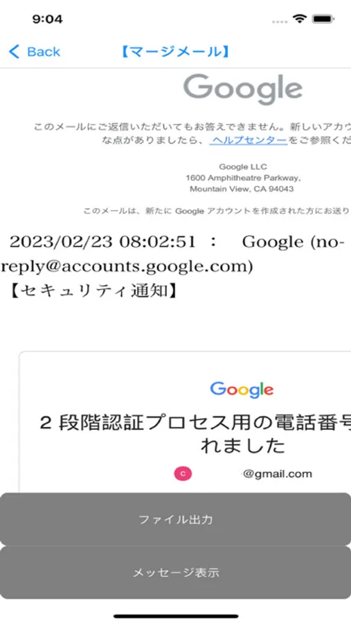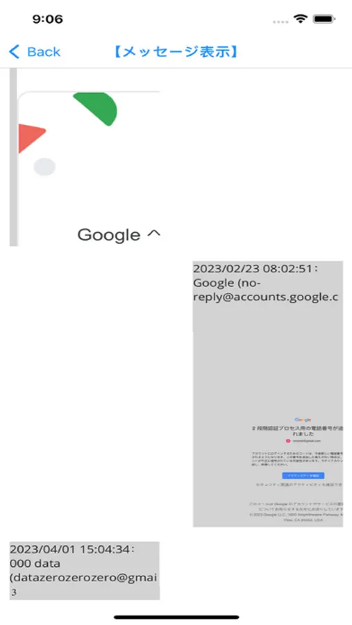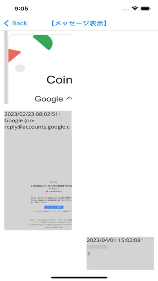 メッセージアプリ風の表示は、登録したメールアドレスが選択したメールにない場合