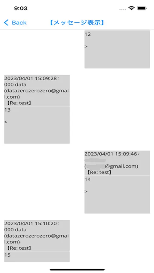 メールは、古い順に上から下に表示されます。