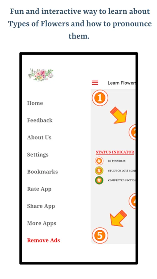 The app will help you learn the correct pronunciation of types of flowers using English language. Following are the main features of this app