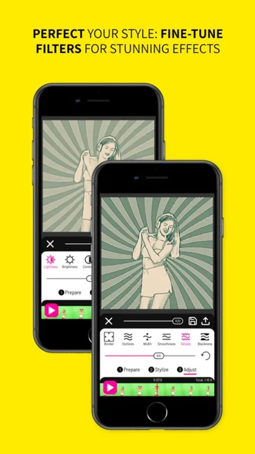 Become the director of your own creative journey! Toonita Video's three-stage processing – Prepare, Stylize, and Adjust – allows you to meticulously tailor your videos. Refine filter parameters in the Adjust stage to achieve stunning results that suit your unique style.