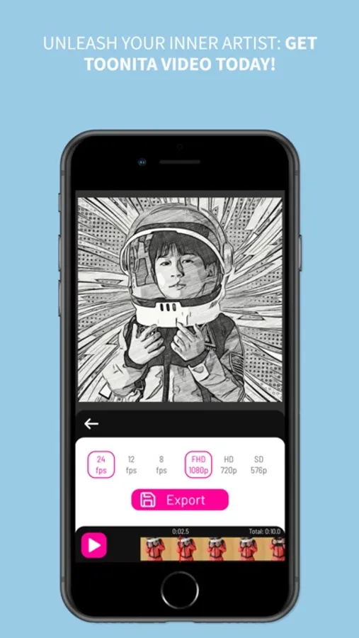Bring your videos to life with 28 captivating cartoon, comic, and pop art filters that add an enchanting touch to every frame. Watch as your footage evolves into a vibrant canvas of creativity, all within the intuitive Toonita Video app.