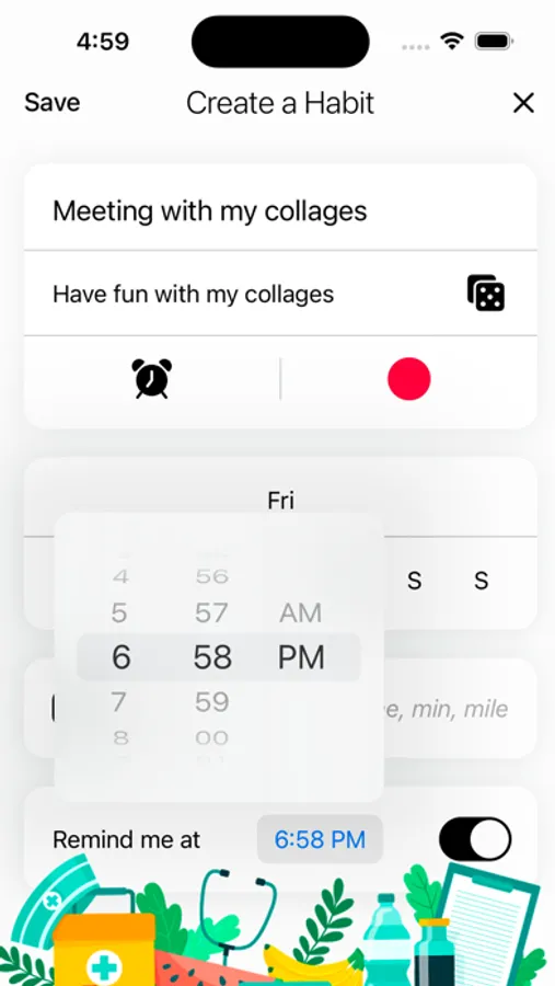 Create different types of habits and tasks, set daily, weekly or monthly goals.