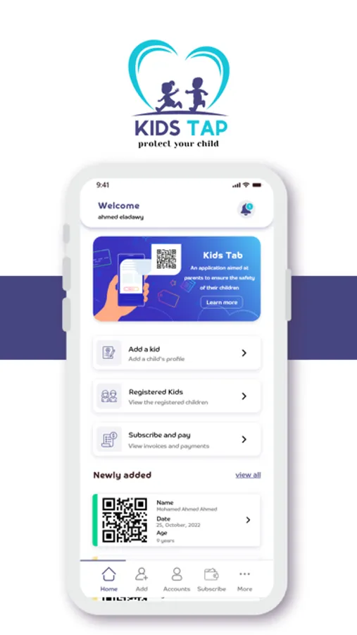 Parents can add their children to the Kids Tab app for ease of identifying them in case of getting lost in crowded places or accidents, among others. Additionally, it enables easy communication with parents through scanning the child's barcode that displays the child's information (name, address, home number, and a call button to contact the parents).