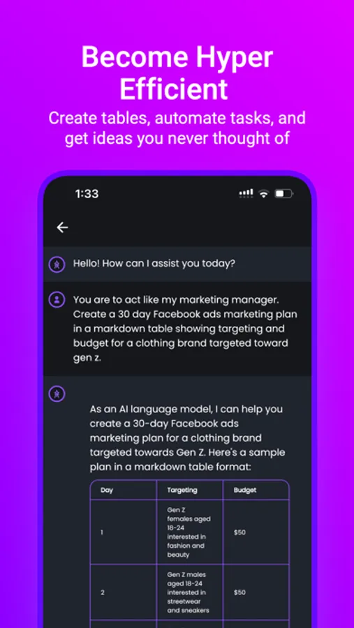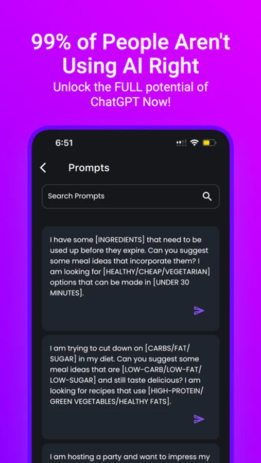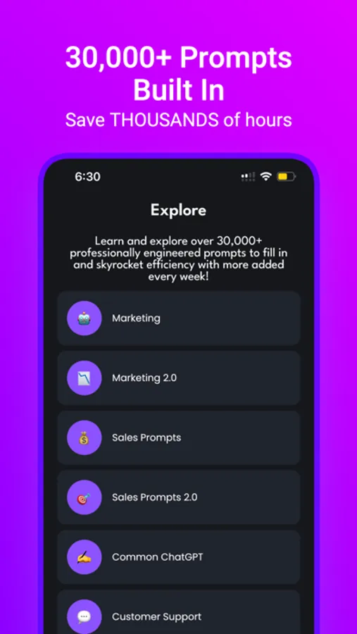 We’re the ONLY AI Chatbot with 30,000+ professionally engineered prompts in multiple categories built right into the app. We take out the guesswork so you can become hyper efficient.