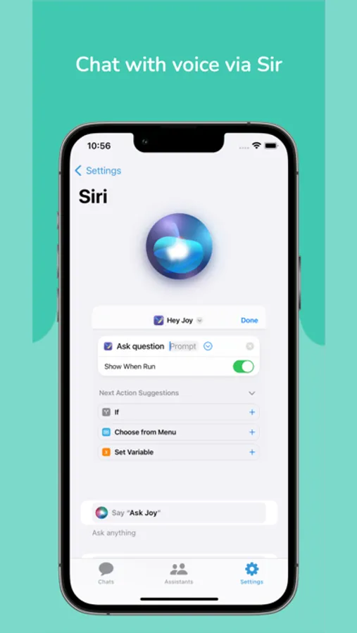 - Leverage Siri shortcuts to initiate and continue chats seamlessly.