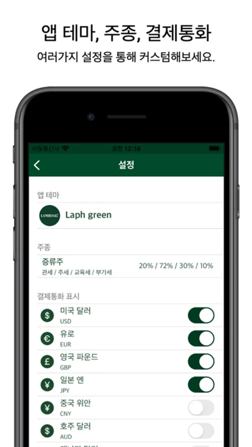 - 결제통화 표시 on/off 설정 기능
