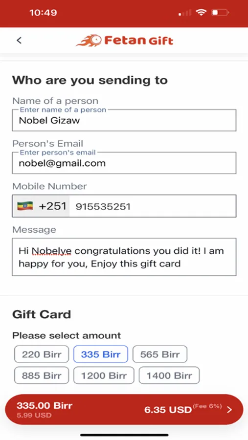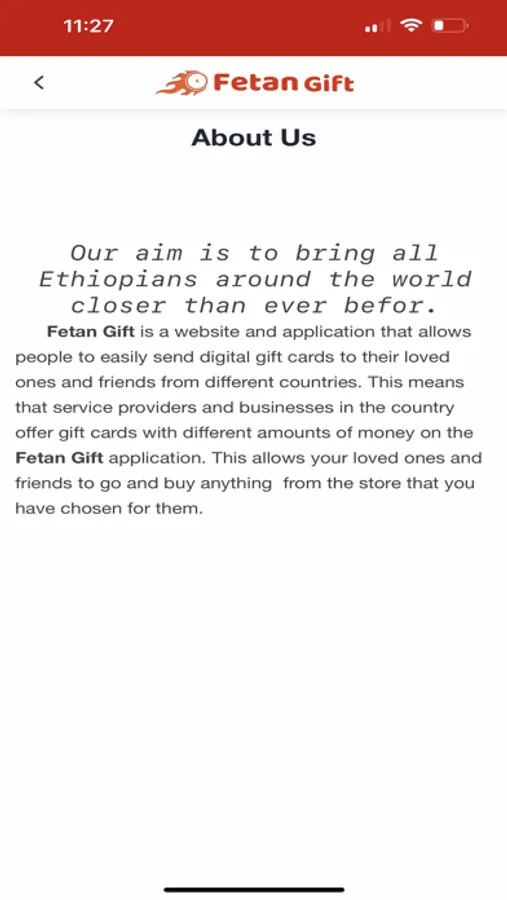 Fetan Gift is a website and application that allows people to easily send a gift cards to their loved ones and friends from different countries. This means that service providers and businesses in the country offer gift cards with different amounts of money on the Fetan Gift application. This allows your loved ones and friends to go and buy anything from the store that you have chosen for them.