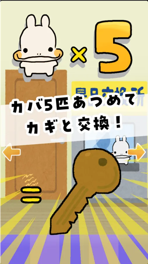 To get out of the room, you need to exchange five hippopotamuses for a key!