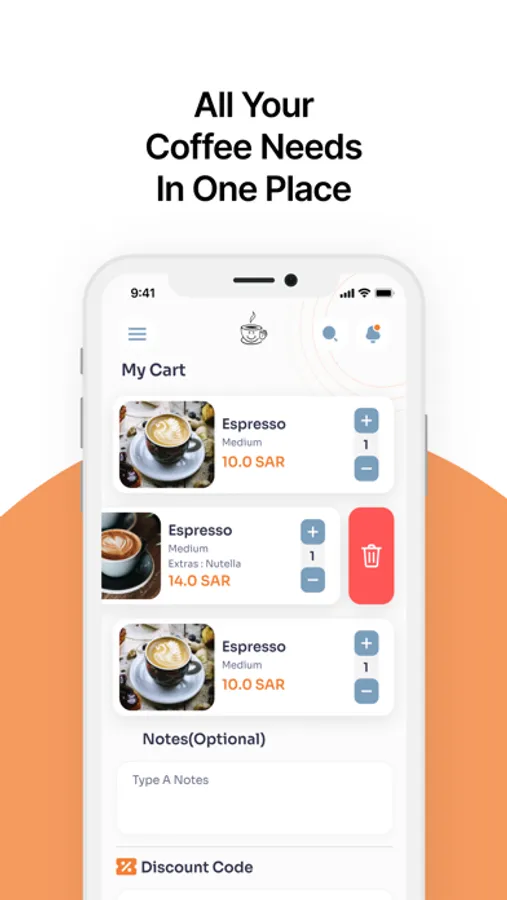 4. توصيل واستلام ذاتي: يقدم التطبيق خيارين للزبائن للحصول على طلباتهم، إما عبر خدمة التوصيل إلى المنازل أو الاستلام الذاتي من فروع الكافيه.