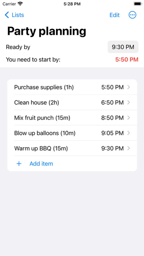 Ever needed to know when to start a series of tasks? Wonder no longer! With the ability to Reverse Time, you can create any number of lists with varying durations. The app will then work out what time you should start by in order to be ready by the time you've selected. Simple!