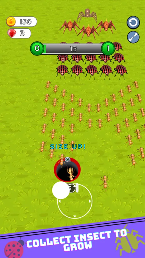 You can change the appearance of the hole with the prizes you have won. Feel free to use power-ups if collecting all the bugs becomes difficult.