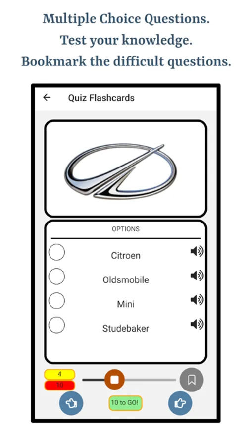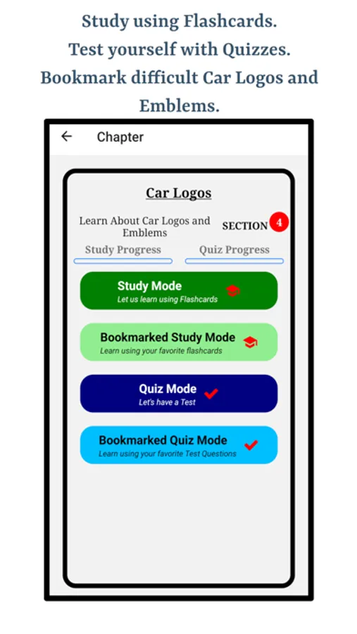 This app is a great resource to memorize Car Logos And Emblems . The app is engineered to make users perfect identifying famous car logos and emblems by studying for a very short amount of time. Audio functionality and bookmarking is available throughout the app on chapter, section, study mode and quiz modes.