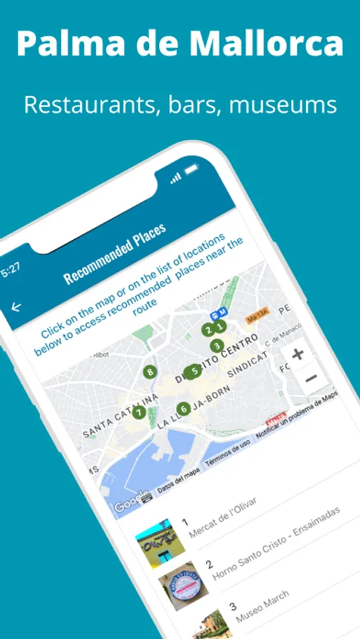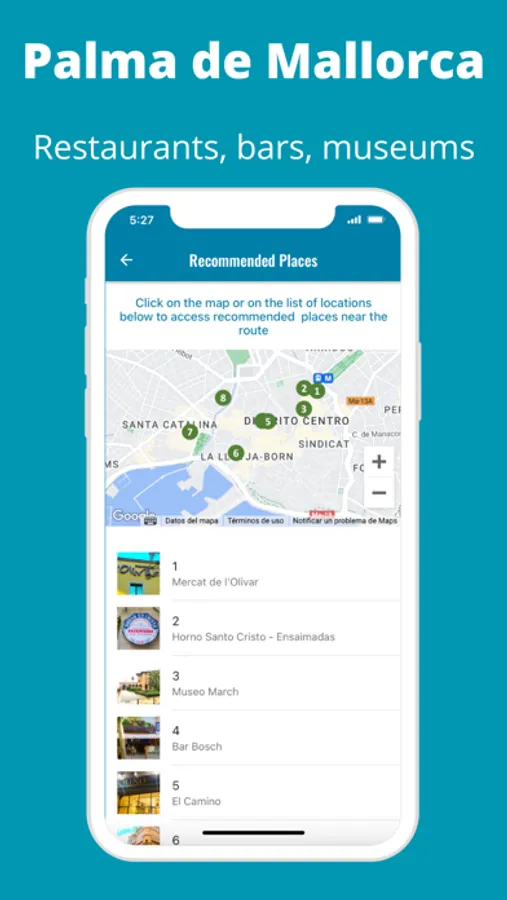 1.- An interactive map of your situation and that of the points of tourist interest along the route, and also the location of restaurants and typical places.