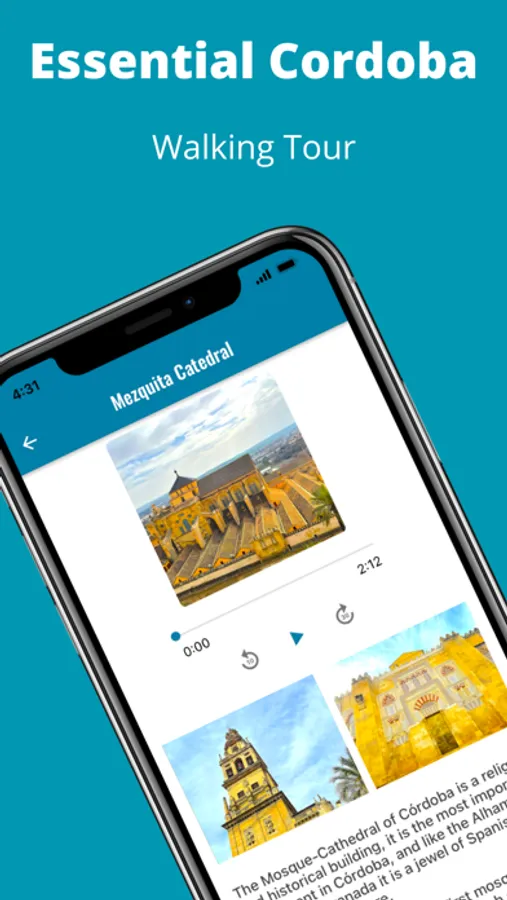 2.- A simple text and audio description of the main monuments on the route and their history. So you can listen while you do the tour.