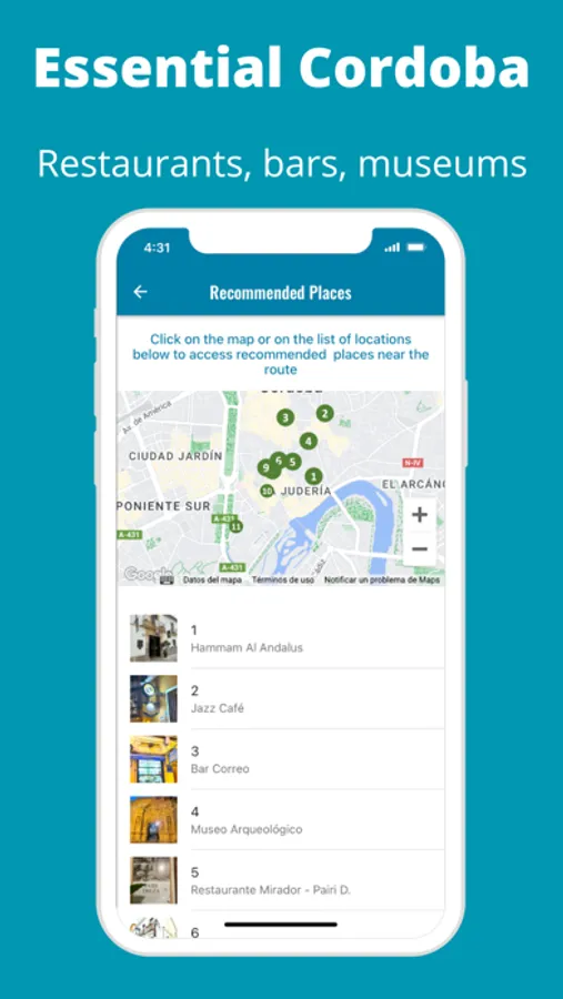 1.- An interactive map of your situation and that of the points of tourist interest along the route, and also the location of restaurants and typical places.