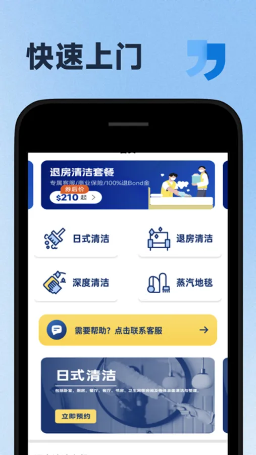 *退房清洁―― 专为租赁房屋设计,主要针对房屋内的各个角落进行全面、彻底的清洁。包括地面、墙面、家具、卫生间、厨房等