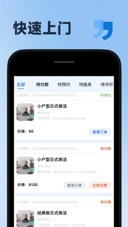 拾舍清洁App界面简洁明了,操作便捷。您只需选择服务类型、预约时间和联系方式,即可快速预约专业清洁服务。我们支持多种支付方式,让您轻松支付,省心又省力。