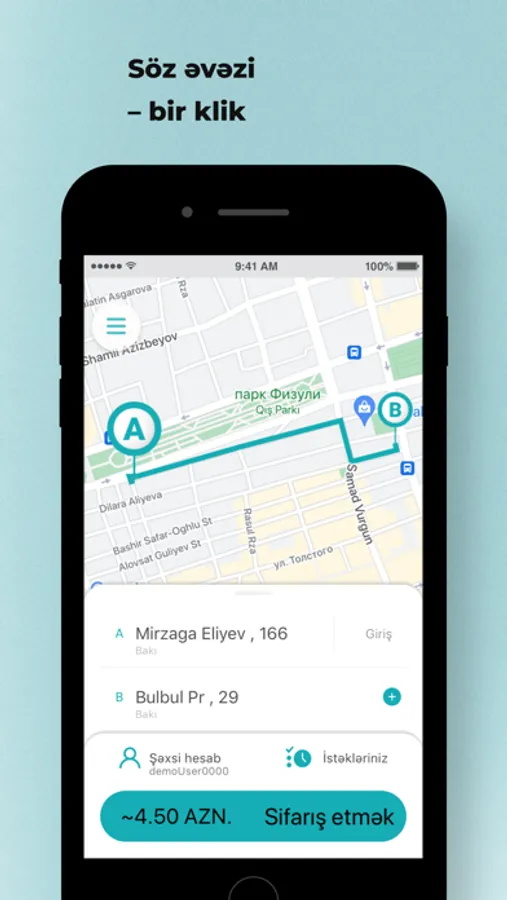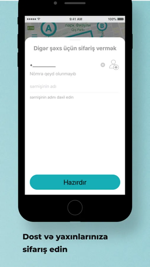 Tətbiqə daxil olun, ünvanı daxil edin və bir düyməni basmaqla taksi sifariş edin