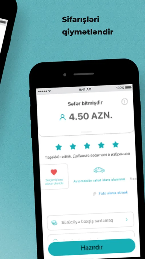 Hazır şablonlardan istifadə edərək səyahəti qiymətləndirin. Səyahəti bəyəndinizsə o zaman sürücüyə bəxşiş saxlamaq imkanınız var.
