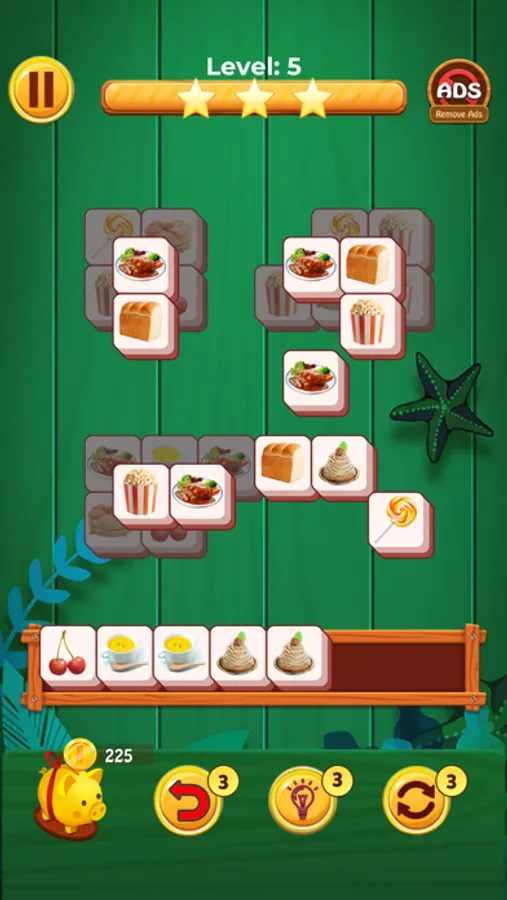 Gameplay Interface: When you open the Tile Match app, you'll be presented with a grid of colorful tiles. Each tile typically contains food item.